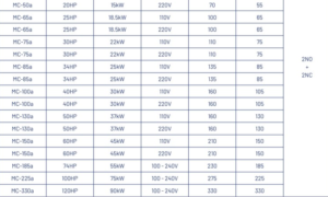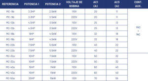 - Contactor MC LS ELECTRIC. Polos: 3 polos. Potencia 1: 3.3 a 120HP. Potencia 2: 2.5kW a 90kW. Voltaje de bobina: 110V a 100 – 240V