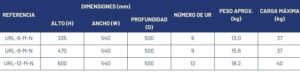 Disposición interna regulable en profundidad, parantes con marcación vertical UR.